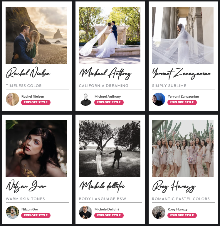 Du kan velge om du vil at Imagen skal analysere din unike stil og redigere som du ville gjort, eller om du ønsker å bruke en "Talents" profil. Disse profilene er ferdiglagde bildestiler fra andre profesjonelle fotografer.